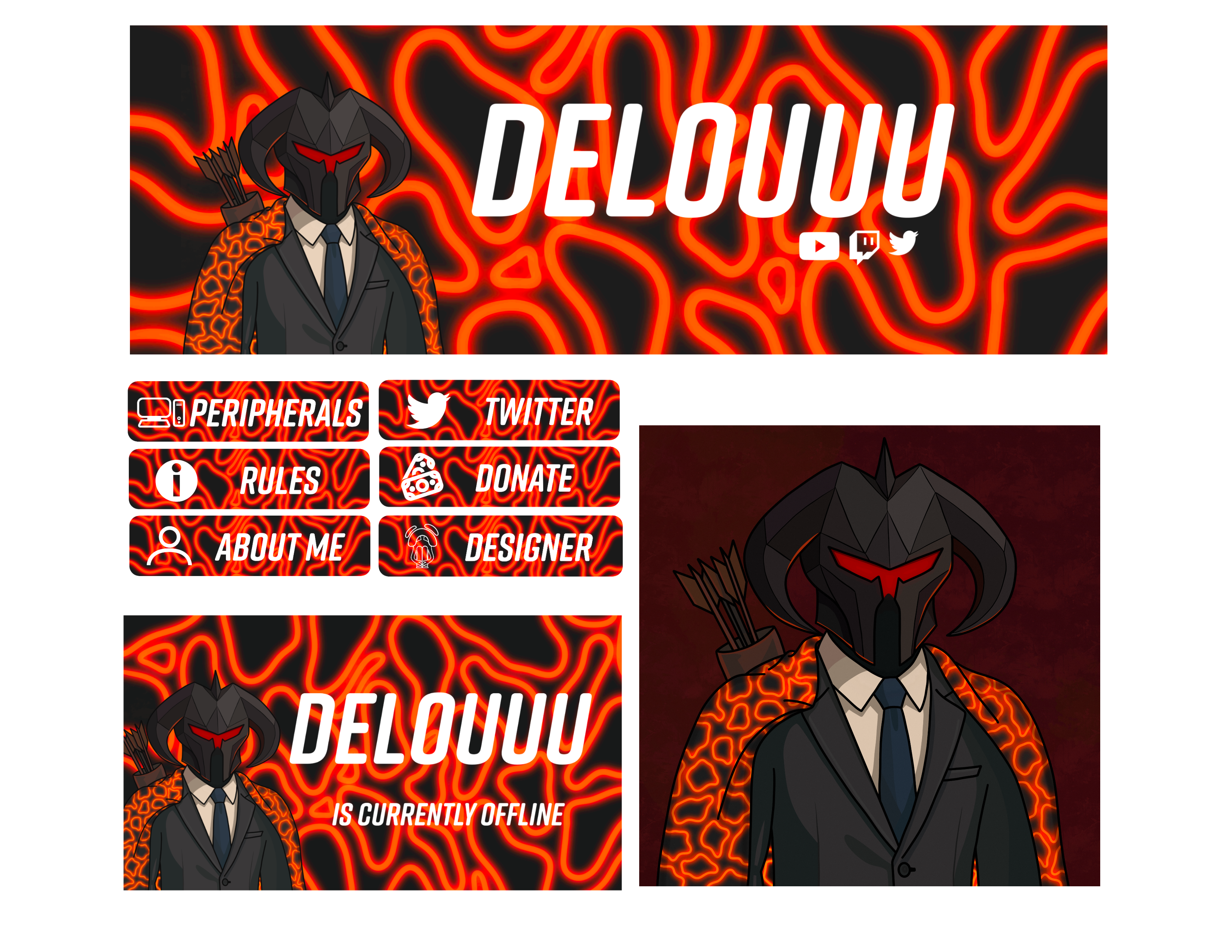 Delouuu streams gameplay on multiple different platforms, this project consisted of creating a logo, banner and buttons for stream navigation. The goal was to tie everything together making each platform familiar to the last.
