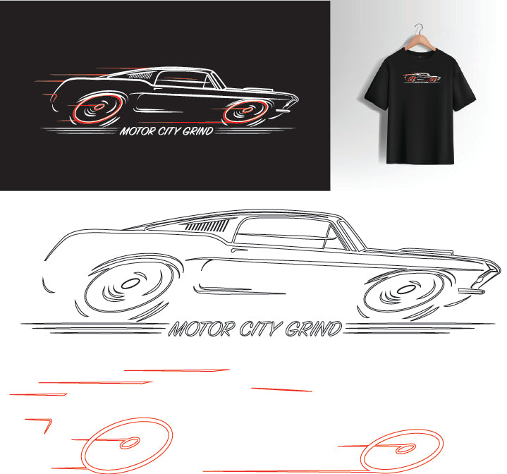 Motor City Grind is a Classic Mustang mechanic and restoration shop located outside of Detroit MI. This logo was designed to represent the classic body shape of the 65 Mustang, creating movement throughout the overall design. Included with creating and installing the vinyl logo onto the shops paint room wall.